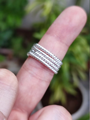 Twisted Wire Stackable Silver Midi Rings Band, 925 Sterling Silver Dainty Rings, Stacking Rings, Toe, Knuckle, Stack Silver Rings Set