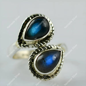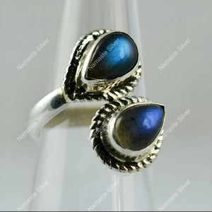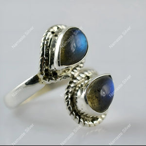 Home Valuable Labradorite Dual Gemstone Ring, Gemstone Ring, Gray Statement Ring, 925 Sterling Silver Jewelry, Anniversary Gift, Ring For Wife