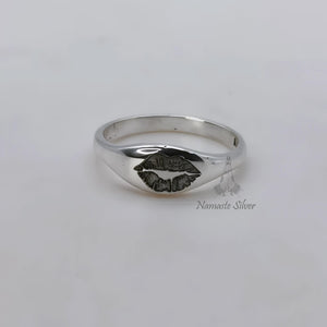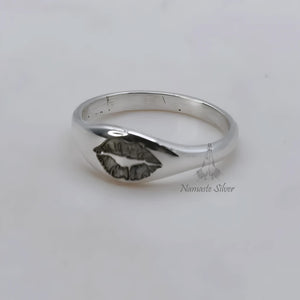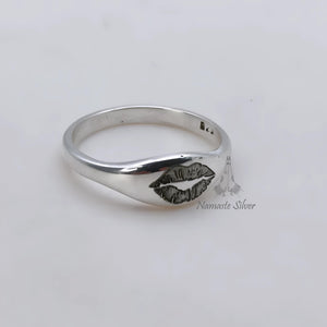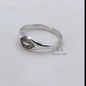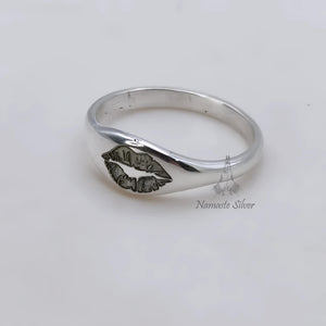 Whispering Kiss Lips Ring, Sterling Silver Promise Band, Handmade Engraved Smooch Jewelry, Dainty Kiss Design, Romantic Love Gift for Her