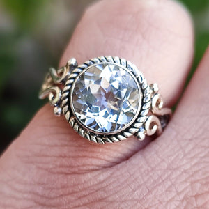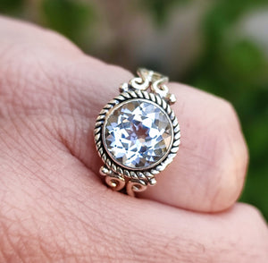 White Topaz Ring, White Topaz Silver Ring, White Topaz Sterling Silver Handmade Statement Ring, Natural White Topaz Round Ring, Gift for Her